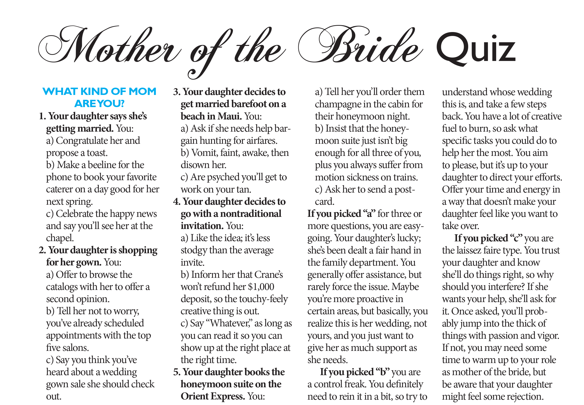 Mother of the Bride Quiz